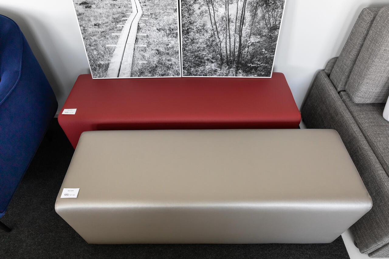 Erinevates toonides kunstnahaga polsterdatud istepingid.