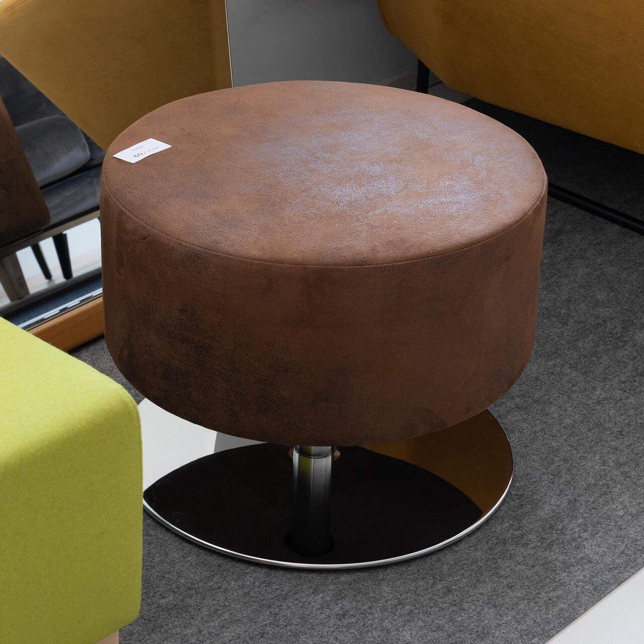 Kunstnahaga polsterdatud pöörlev tumba, roostevabast terasest jalg
