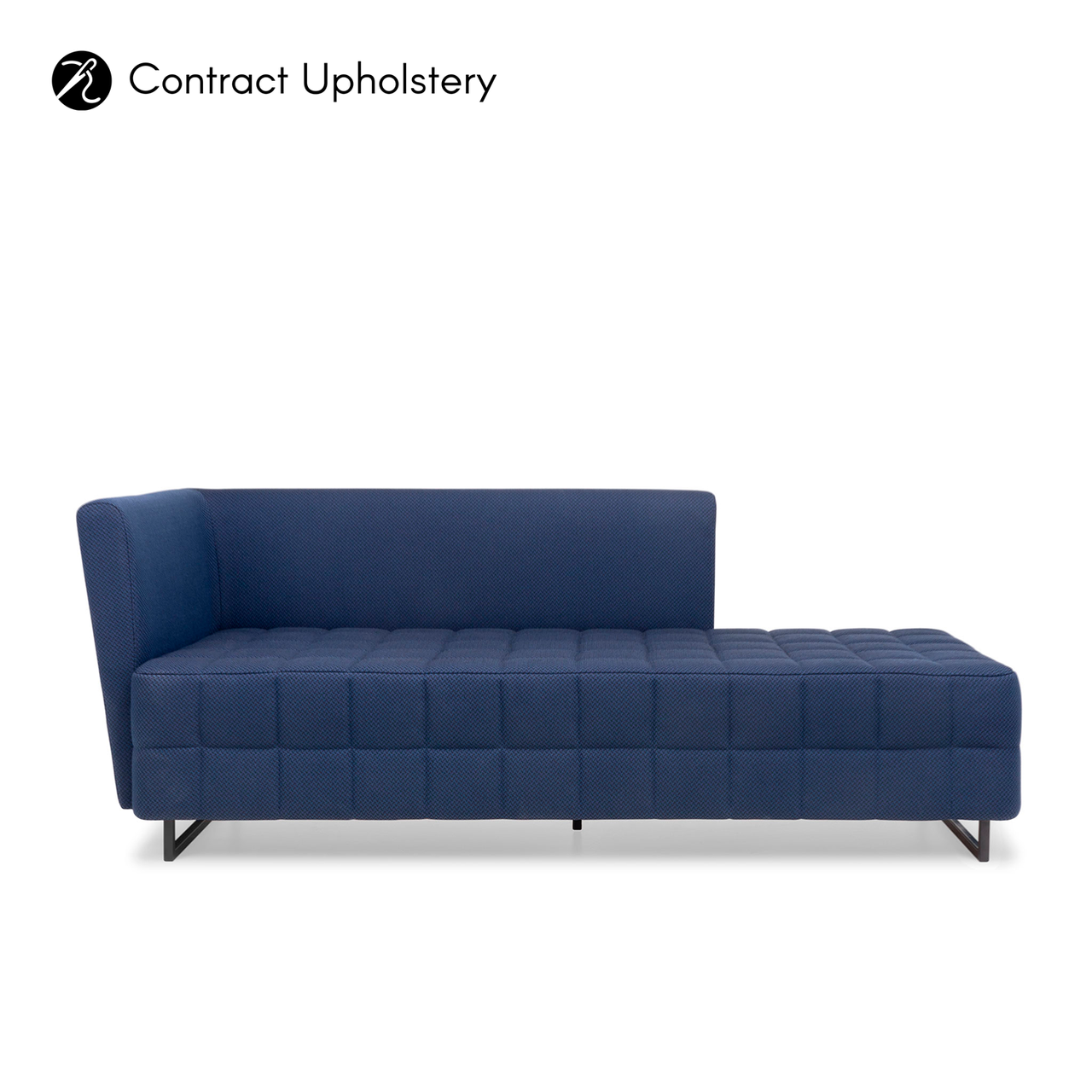 Decorated with quilted upholstery. Strong birch plywood frame, content high-quality HR-foam. Upholstered with high durability cover fabrics that have a wide range of shades. Powder coated metal legs.